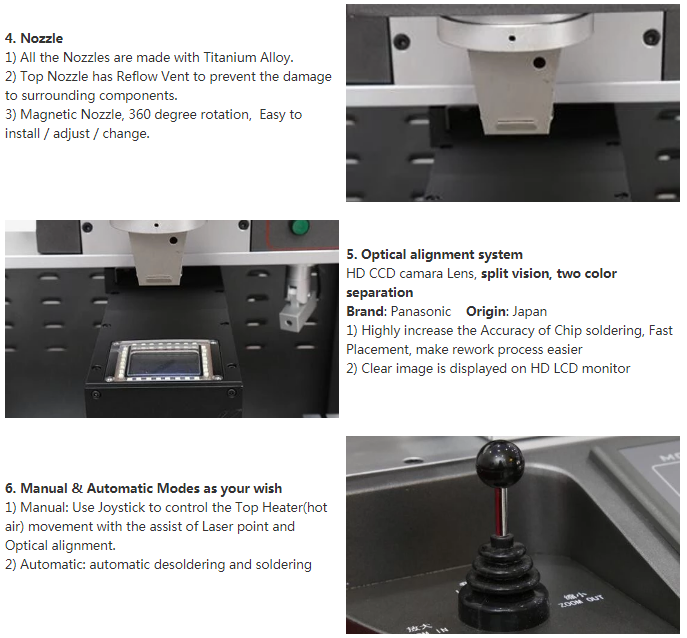 Може переробляти BGA, PGA, POP, BQFP, QFN, SOT- 223, PLCC, TQFP, TDFN, TSOP, PBGA, CPGA, світлодіодний чіп.