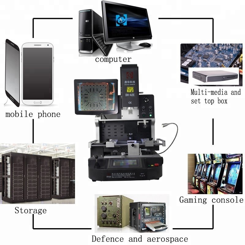 DH-A2E - це унікальна станція для переробки BGA, високоякісна ПЗЗ-камера з автоматичною системою подачі та збирання, що набагато зручніше у роботі. високий рівень успішності переробки дуже високо оцінений між клієнтами.