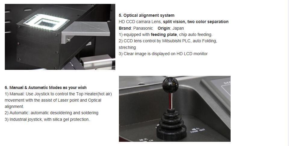 * Лазерне позиціонування для швидкого позиціонування BGA-чіпа та материнської плати.